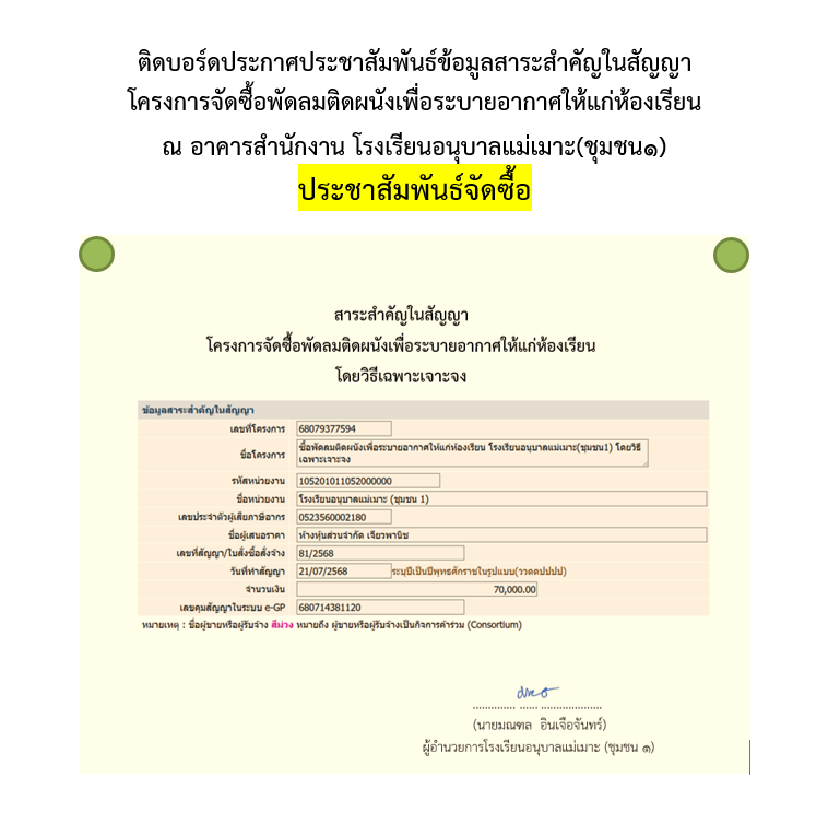 ประกาศประชาสัมพันธ์ข้อมูลสาระสำคัญในสัญญา