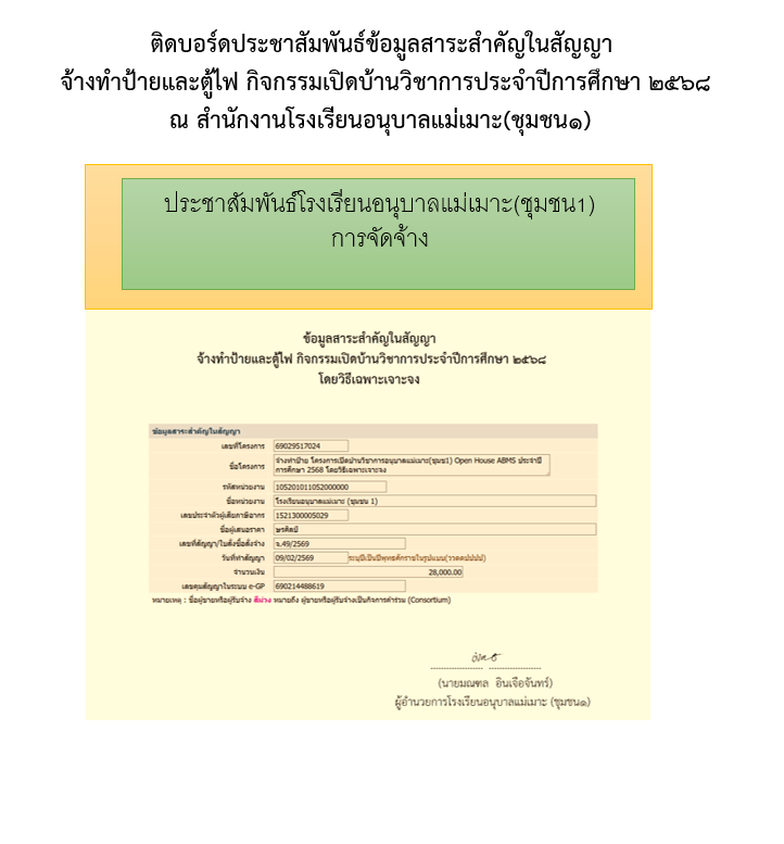 จ้างทำป้ายและตู้ไฟ กิจกรรมเปิดบ้านวิชาการประจำปีการศึกษา 2568
