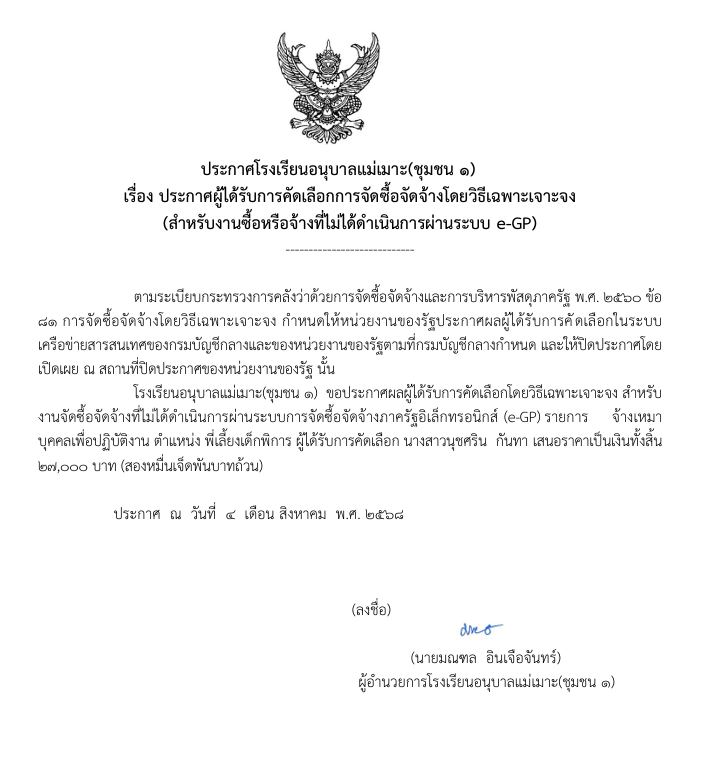 ประกาศโรงเรียนอนุบาลแม่เมาะ(ชุมชน 1)