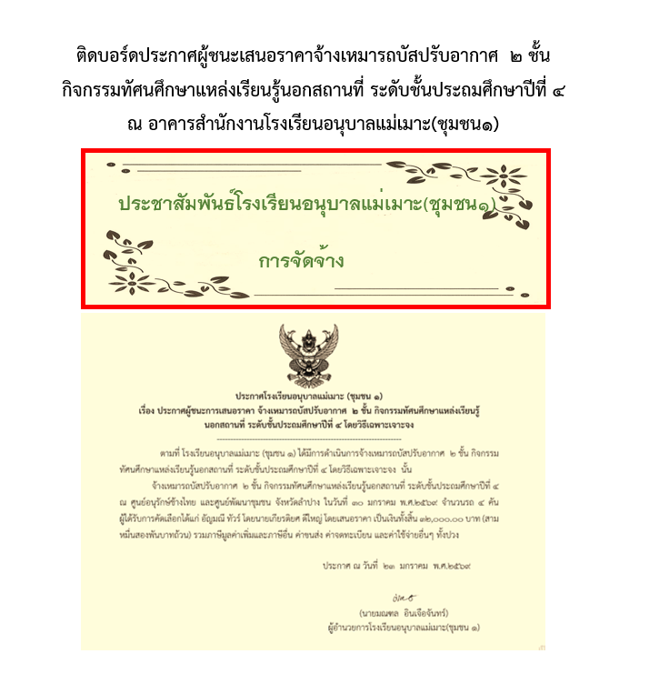 ประกาศผู้ชนะเสนอราคาจ้างเหมารถบัสปรับอากาศ ๒ ชั้น