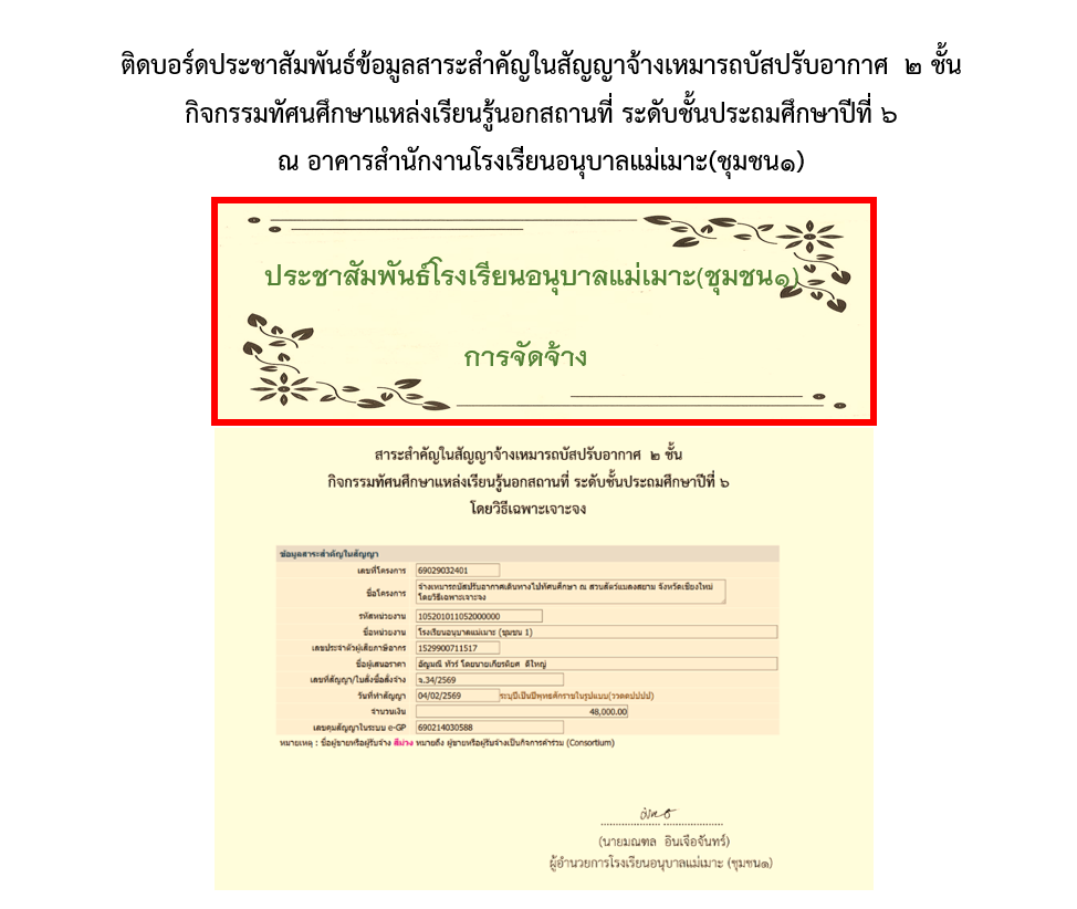 ข้อมูลสาระสำคัญในสัญญาจ้างเหมารถบัสปรับอากาศ ๒ ชั้น