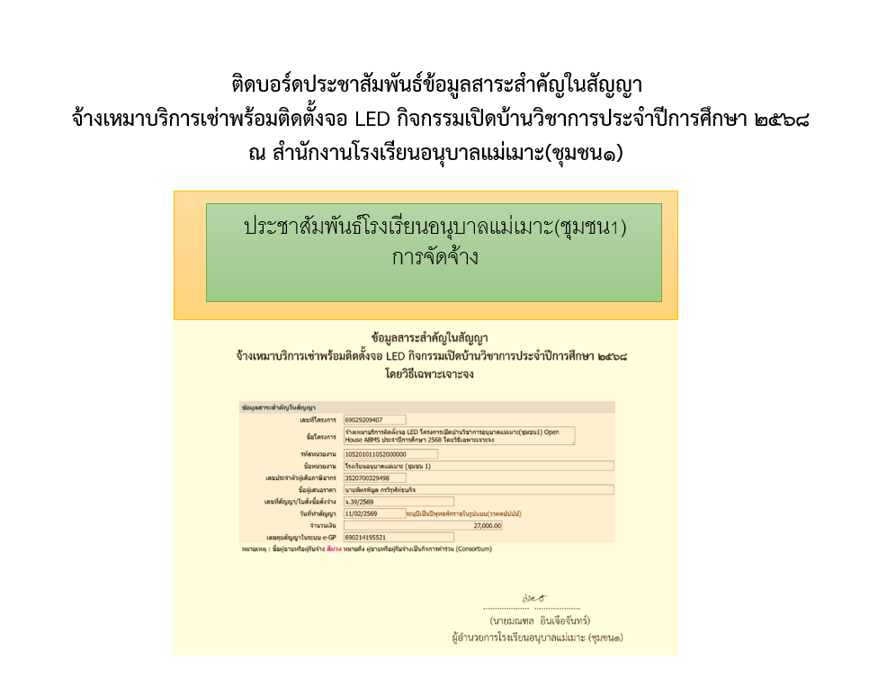 จ้างเหมาบริการเช่าพร้อมติดตั้งจอ LED กิจกรรมเปิดบ้านวิชาการประจำปีการศึกษา 2568
