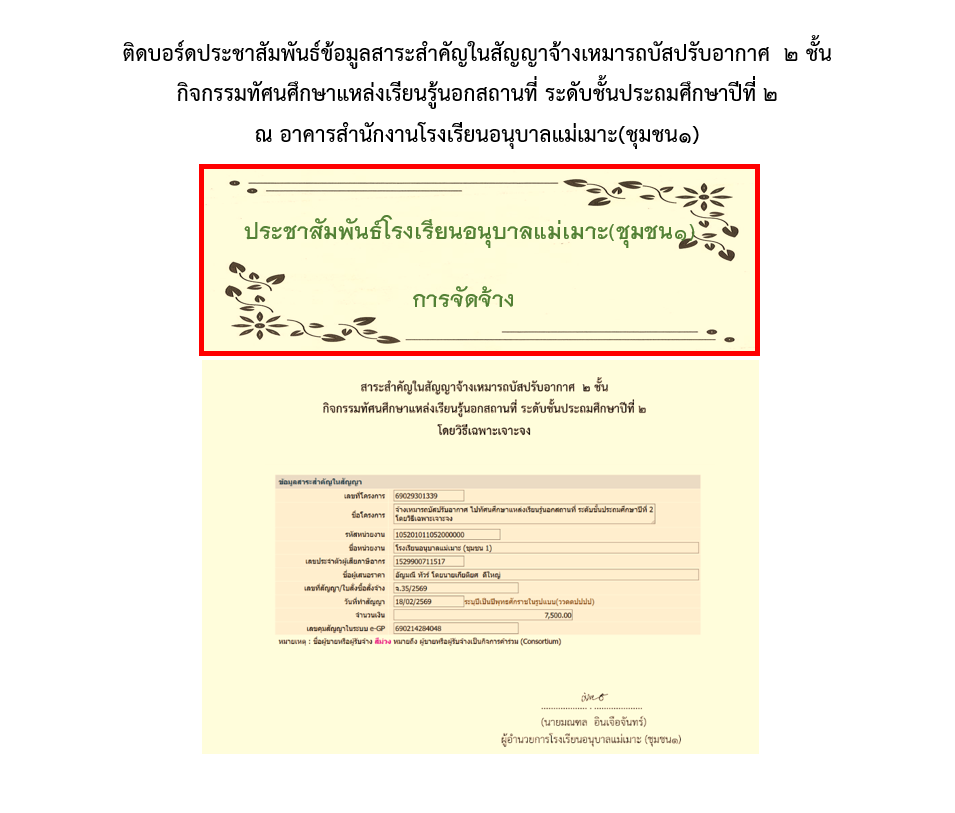 ประชาสัมพันธ์ข้อมูลสาระสำคัญในสัญญาจ้างเหมารถบัสปรับอากาศ ๒ ชั้น